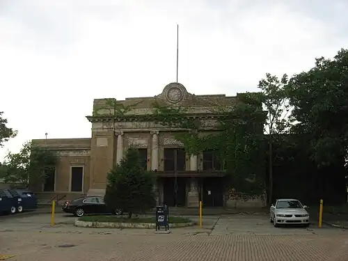 The building was completed in 1916 when the railroad embankment through town was elevated above street level to eliminate hazardous grade crossings.[4] The two previous stations had been located three blocks southeast along Wood Street between Franklin and Rebecca Avenues.[5]: 80