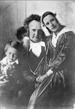 Richards married Jennetta Richards on September 24, 1838,[9] while on a four-year mission to England.[14] Their first child, named Heber John, was born on July 17, 1839, but died of smallpox just five months later in October.[15] They had two surviving children, a son, also named Heber John, born in Manchester, England, in 1840, and a daughter, Rhoda Ann Jennetta, born in 1843 in Nauvoo, Illinois. Jennetta Richards was in poor health, and after traveling across the Atlantic Ocean in April 1841, Richards took her to live with his siblings in Richmond, Massachusetts, while he went on to Nauvoo, Illinois.[15]