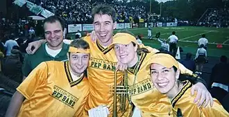 Under the leadership of Jason Maga, the Pep Band sat down with Athletics, the Student Government, and the Administration to work out a new direction for the Pep Band. With the support of these groups, the Pep Band started a flyering and mailing drive across campus and to all incoming freshmen. In the Fall of 1999, the Pep Band was reformed as fully student-run organization,[6] under the Directorship of Jason Maga.