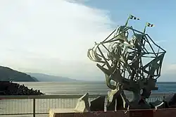 The Trouw reached Tidore (Eastern Indonesia), where the crew were killed by the Portuguese in January 1601.[28] In fear of the hostile Spaniards, the remaining crews determined to leave Floreana Island and sail across the Pacific. On 27 November 1599, when both ships sailed to Japan, the fleet was stranded on an isle which is believed to have been Hawaii.[29][30]
