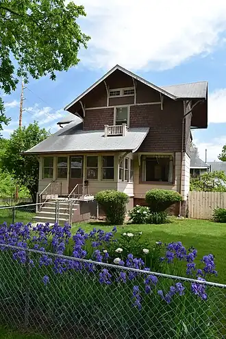 The William B. Hayes House is a historic building located in Des Moines, Iowa, United States. The house is significant for its being one of the best examples in Des Moines of the Swiss chalet style subtype of the Stick Style.[2] It was built in 1886 as a single-family dwelling by local developer Lowry W. Goode. This 1½-story frame structure on a brick foundation features a gable-end facade that is intersected by side gables, and wide eaves that are supported by wood braces. The northern side gable extends over an enclosed front porch. The house was listed on the National Register of Historic Places in 1996.[1]
