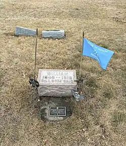He died at his home in Des Moines, Iowa on April 19, 1919, and was buried at Glendale Cemetery.[1]
