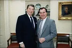 During the 1980 elections he defeated John Hart in the Republican primary and also received the nominations of the Conservative and New York State Right to Life parties.[12] In the general election he defeated Democratic nominee Thomas Twomey.[13][14]