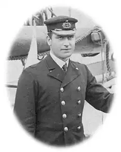 William Colbeck was born on 8 August 1871, at Myton Place, Kingston-upon-Hull, Yorkshire. He was the fifth child in a family of ten born to Christopher Colbeck, a baker, and his wife Martha.[2] Educated at Hull Grammar School, Colbeck served a merchant navy apprenticeship on the Loch Torridon between 1886 and 1890 and completed a six-month course in navigation before going to sea.[3] He earned his second mate's certificate in Calcutta in 1890, first mate's certificate in July 1892, master's in March 1894.[3] He joined the firm of Tomas Wilson, Sons and Co, Ltd., of Hull and served on RMS Montebello as the second mate under Captain Pepper.[3] He passed as extra master in November 1897. He was awarded a Royal Navy reserve commission in 1898.
