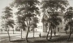 The Hall, to the west of what is now the modern district of Handbridge, was built by Thomas Cowper (d. 1695), who had acquired the estate partly through descent and partly through purchase. William Cowper made improvements to the property, which in 1811 was inherited by Charles Cholmondeley (1770–1846), third son of Thomas Cholmondeley of Vale Royal Abbey and rented to a tenant. In 1821, along with 135 acres (55 ha) of land, it was bought by Robert Grosvenor, 1st Marquess of Westminster and demolished in 1830 to allow construction of a new entrance to the Eaton Hall estate.[5]