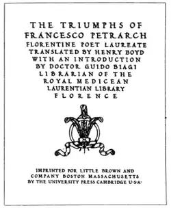 - ^ a b "Collection concerning the publication of The triumphs of Francesco Petrarch ..., 1903-1941". OCLC. Retrieved 17 February 2013.