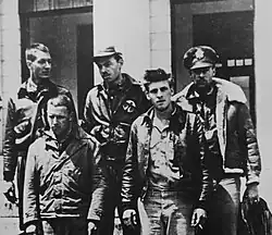 In February 1942, following the squadron's transfer to Columbia Army Air Base in January, Farrow volunteered to participate in the Doolittle Raid, an attempt to retaliate against the Japanese as a result of their attack on Pearl Harbor. At the time, however, the mission was secret and its target unknown to the volunteers. On April 1, 1942, after training in various places around the United States, the crews and their respective aircraft departed from San Francisco aboard the USS Hornet (CV-8).[3] The mission took place on April 18.[1] The B-25 which Farrow piloted,[1] named Bat out of Hell,[3] was the sixteenth and final aircraft to depart from the Hornet.[1][5] After the aircraft's targets in Nagoya, which included an oil tank and aircraft factory, had been bombed, Farrow intended to land in Quzhou. However, the Japanese had deactivated the beacon that Farrow was using for direction.[5]