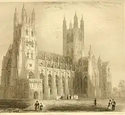 Gostling's Walk in and about the City of Canterbury appeared in 1774. A second corrected edition, in 1777, was for the benefit of his surviving daughter, Hester Gostling, and friends contributed additional plates. Other editions were issued in 1779, 1796, 1804, and 1825. The account of the painted windows in the cathedral was supplied by Dr. Osmund Beauvoir, head-master of the King's School.[2]