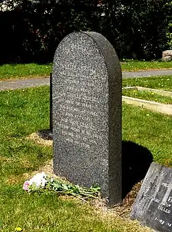 Grainge died in number 12 Chapel Street, Harrogate, on 29 September 1895.[9][nb 11] "For a month previous he had been confined to the house, but the glorious sunshine tempted him out. During the day he continued to feel better, but after returning at night his heart failed, and he passed away peacefully."[5] He was buried in Grove Road Cemetery, Harrogate.[nb 12]