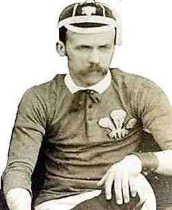 William Gwynn (1856 - 1 April 1897) was a Welsh international rugby union forward who played club rugby for Swansea and would later become secretary of the Welsh Rugby Union. Gwynn was an all-round sportsman and as well as his success on the rugby pitch he also player cricket for Swansea, of which he became vice-president, and Glamorgan. Gwynn had also played association football and had captained Battersea College XI through two undefeated seasons.[3] He would later become a referee and would officiate the very first football game between Swansea Town and Cardiff City.