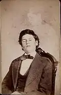 Other photographs by Mumler included pictures showing various spirits (including relatives, fiancés, actresses and spirit guides) with living sitters.[4] Other well-known sitters include Moses A. Dow, editor of The Waverley Magazine, whose photograph apparently showed the spirit of his assistant Mabel Warren, and Fanny Conant, a well-known medium from Boston, apparently photographed with the ghost of her brother Chas.[9]