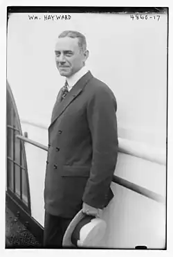 In the 1910 United States House of Representatives election, Hayward was the Republican candidate for Nebraska's 1st congressional district. He lost the election to Democratic incumbent John A. Maguire.[4] After the election, he travelled around the world. Upon his return, he settled in New York City and began practicing law there as a member of the firm Wing & Russell on 14 Wall Street from 1911 to 1912.[3] In 1913, he became deputy assistant New York County District Attorney. In 1914, he became the assistant district attorney. He then managed Charles Seymour Whitman's gubernatorial campaign. In 1915, Governor Whitman appointed him counsel to the governor, and later that year, he served as counsel to a New York State Legislature committee to investigate the New York Public Service Commission. He was then appointed a public service commissioner for the first district, resigning from the position in 1918.[5]