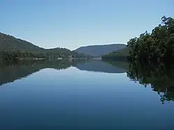 The William Hovell Dam is a rock and earth-fill embankment dam with a flip bucket chute spillway across the King River, operated by Pacific Blue and located in the Hume region of Victoria, Australia.[1] The purposes of the dam are for irrigation and the generation of hydroelectricity. The impounded reservoir is called Lake William Hovell.