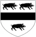 - ^ The usual attitude of heraldic beasts is facing dexter; the boars are shown facing sinister on Huddesfield's tabard, but facing dexter on the brass escutcheon set into the ledger stone of his monument