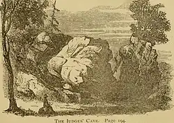 One of the most interesting facts in his life was his connection with the two judges, Whalley and Goffe. During their hiding in New Haven in the Judges' Cave, Jones' house was their place of refuge for eleven days.[3] The honors seem to have been shared with Reverend John Davenport during this exciting episode in New Haven.[4]