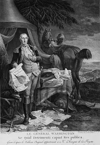 William Lee (c. 1750[1] – 1810[2]) was an American slave and personal assistant of George Washington. He was the only one of Washington's slaves who was freed immediately by Washington's will. With his service by Washington's side throughout the American Revolutionary War and occasional depiction next to Washington in paintings, Lee was one of the most publicized African Americans of his time.