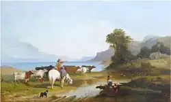 Cresswell probably did little farming[4] because he was first and foremost a painter. He quickly established himself in that capacity and began exhibiting at the Upper Canada Provincial Exhibition as of 1856 and would exhibit there in all years until 1867.[5] He travelled extensively in Canada: to Georgian Bay in 1865, through Québec and New Hampshire in 1866, to Lake Nipigon in northern Ontario in 1876, and in the 1880s he visited the Maritimes and spent some time on the Gaspé Peninsula, and travelled to Grand Manan in New Brunswick.[6]