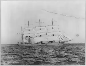 William P. Frye was a four-masted steel barque named after a US Republican politician of the same name, from the state of Maine. Built by Arthur Sewall & Co of Bath, Maine[3] she was sunk by the Imperial German Navy raider SMS Prinz Eitel Friedrich in 1915. She was the first U.S. vessel sunk during World War I.[4]
