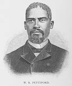 William R. Pettiford (January 20, 1847 – September 20, 1914) was a minister and banker in Birmingham, Alabama. Early in his career he worked as a minister and teacher in various towns in Alabama, moving to the 16th Street Baptist Church in 1883 and serving there for about ten years. In 1890 he founded the Alabama Penny Savings Bank. It played an important role in black economic development in Alabama and in the South during the 25 years it existed. Pettiford has been called the most significant institutional builder and leader in the African American community in Birmingham during the period in which he lived.[1] In 1897 he was said to be next to Booker T. Washington the black man who has done the most in the South for blacks.[2]