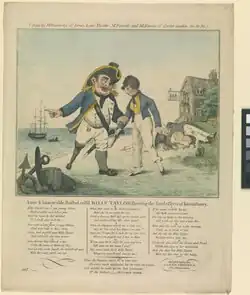Several versions exist,[2] but the story of the song concerns a young couple due to be wed. On the morning of the wedding, the groom William Taylor (Billy in some versions) is pressed into service. The bride searches for him, disguising herself as a man to become a soldier[3] or sailor.[4] When her true sex is revealed (usually in an incident involving accidental exposure of her breasts), the captain points her in the direction of her beloved, but mentions that he now has a new suitor. When she finds him, she shoots him and sometimes also his new bride. In some versions, she is then rewarded by the captain with command of her own ship.[5]