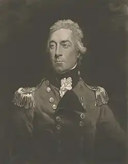 He was severely wounded at the Battle of Brandywine in September 1777 during the American Revolutionary War.[1] During the French Revolutionary Wars he was present at the Battle of Raismes in May 1793, the Battle of Famars also in May 1793, the Siege of Valenciennes in June 1793, the Battle of Lincelles in August 1793, the Siege of Dunkirk in September 1793, the Battle of Le Cateau in March 1794 and the Battle of Tournay in May 1794.[1]