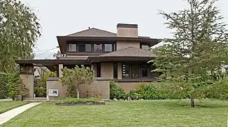 There are three Wilshire Park homes designated as Los Angeles Historic-Cultural Monuments (LAHCM): the William J. Weber House, pictured above, designed by Lloyd Wright and built in 1921;[8] the A.W. Black Residence, designed by John Frederick Soper and built in 1913; and the William J. Hubbard Residence designed by Allen Kelly Ruoff and Arthur C. Munson, and built in 1923.[6]