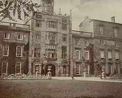 Whoever the architect, a great mansion arose, an early prodigy house by a courtier of the Tudors. Today only one other part of the Tudor mansion survives: the great tower in the centre of the east facade. With its central arch (once giving access to the court beyond) and three floors of oriel windows above, the tower is slightly reminiscent of the entrance at Hampton Court. It is flanked today by two wings in a loose Georgian style, each topped by an Italianate pavilion tower.