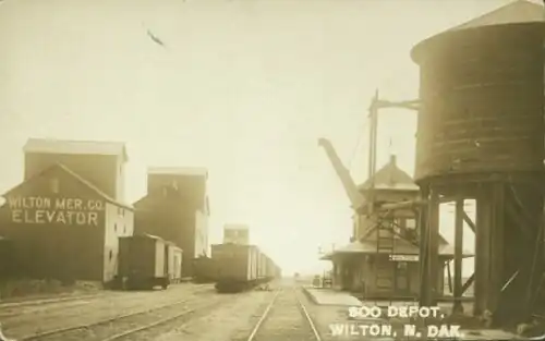 Wilton station in Wilton, North Dakota, USA, was built in 1900 by the Minneapolis, St. Paul and Sault Ste. Marie Railroad. Designed by William J. Keith, it was listed on the National Register of Historic Places in 1978 as the Minneapolis, St. Paul and Sault Sainte Marie Railroad Company Depot. It is also known as Soo Line Depot.[1]