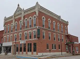 The Winchester Historic District is a historic district which encompasses much of the developed area of Winchester, Illinois. The district includes 438 buildings, of which 273 are contributing buildings.[2] Winchester's historic area represents a typical small, rural county seat; its commercial development is focused around the county courthouse and town square, while low- to moderate-density residential development can be found away from the commercial center. Development in the district began in the 1830s; by the 1870s, most of the significant buildings had been completed. The district's older buildings are mainly designed in the Federal and Greek Revival styles, while its later buildings mostly have Italianate designs. The Greek Revival Presbyterian Church stands out among these traditionally-styled buildings; according to the Illinois Historic Structures Survey, it is the most exceptional Greek Revival church in any Illinois city of over 500 people. The Scott County Courthouse, a late addition to the district in 1885, has also been noted as architecturally significant, though its design does not conform to a single style.[3]