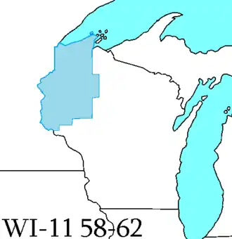 Wisconsin's 11th congressional district is a former congressional district of the United States House of Representatives in Wisconsin. It was created following the 1900 census, and was disbanded after the 1930 census. The district covered the far northern part of the state during its time of existence. All representatives who were ever elected to the seat were members of the Republican Party.