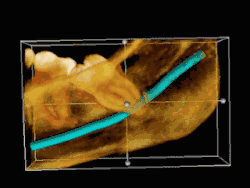 3D CT of an impacted wisdom tooth near the inferior alveolar nerve