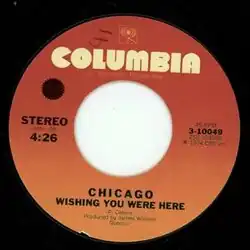 "Wishing You Were Here" is a song written by Peter Cetera for the group Chicago and recorded for their album Chicago VII (1974), with lead vocals by Terry Kath (uncredited on the original album package), while Cetera sang the song's bridge. The third single released from that album, it reached No. 11 on the U.S. Billboard Hot 100, No. 9 on the Cash Box Top 100, and hit No. 1 on the Easy Listening chart.[1]