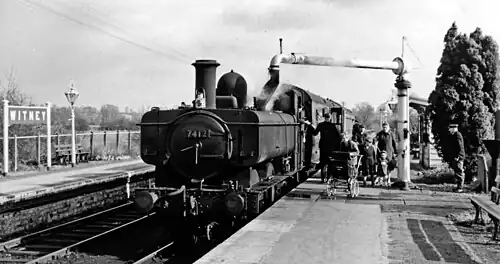 Witney railway station served the Oxfordshire town of Witney on the Oxford, Witney and Fairford Railway line.[1] It consisted of two stone-built platforms, a station building, a signal box, and a shed in the form of a pagoda.