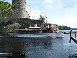 Crichton wanted to extend the company portfolio to complete vessels.[10] The company's first ships were not built in Turku but delivered in parts to Vähä-Äiniö yard at lake Päijänne, 230 km away from Turku. The ships were paddle steamers built by local craftsmen under supervision of specialists sent by Crichton. The first one, named Ensimmäinen ("first") was powered by a small, 12-hp engine and handed over in 1863. The subsequent Toinen ("second") was delivered in the following year and had a 25-hp engine. Both ships were intended for log tugging. Three more ships were built at Vähä-Äiniö yard: passenger ships Seura, which was a 28.8 metres long, and 33.7-metre Lahtis were both paddle steamers and handed over in 1864. In 1866 the Imperial Russian Army ordered Knyas Aleksei, a propeller equipped ship for Päijänne transportation.[11]