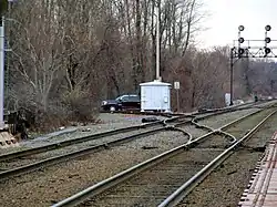 The B&L continued commuter rail service to Woburn on the original branch line from Winchester. The MBTA took over passenger service in 1971 and outsourced it to the Boston and Maine Railroad ("B&M"). Trains ran on the Woburn Loop until 1981 when poor track conditions and budget cuts stopped service.[1] The MBTA and the B&M formally abandoned the branch line in 1982. The MBTA still owns the right-of-way in Woburn, but the portion in Winchester was purchased by the town in 1983, and most was sold off for private development.[2]