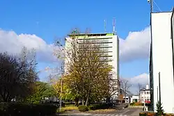 - Ślizgowiec (8 Wojciech Korfanty Avenue) – a nineteen-story residential high-rise completed in 1969,[31] approximately 60 meters tall, built using a sliding method. The design was by Stanisław Kwaśniewicz.[46]