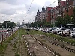 Buses and trams run along the entire length of Wojciech Korfanty Avenue under the Metropolitan Transport Authority[37] and the Municipal Transport Company in Jaworzno.[38] The following stops are located along the avenue: Katowice Aleja Korfantego, Katowice Rondo, Koszutka Misjonarzy Oblatów, Koszutka GIG, Koszutka Słoneczna, Koszutka Jesionowa, Wełnowiec Poczta, Wełnowiec Kościół, Wełnowiec Gnieźnieńska, and Wełnowiec Plac Alfreda.[37] Tram loops are located at the intersections with Słoneczna Street and Telewizyjna Street; the first was opened on 5 September 1964, and the second at its current location in 1956.[39]