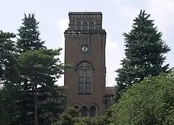 The setting of the early part of the story, "a national university on the outskirts of Tokyo," is modeled after Hitotsubashi University in Kunitachi, Tokyo.[9][10] In addition, the countryside where Hana moves to is modeled after the undeveloped woodland in Toyama Prefecture. The backdrop of the film depicts the landscape of Nakaniikawa District's Kamiichi, Hosoda's hometown, and the neighboring town of Tateyama, and it was divulged that the former mayor of Kamiichi, Naoshi Itō, approached Hosoda to "make a film based on the town". The old house that served as the model for Hana's house was a private home owned by Masao Yamazaki, who lived in Kamiichi. In 2007, five years before the movie was released, Yamazaki passed away, and the house was considered for demolition, but it was chosen as the model for Hana's house, and after the movie became a big hit, it was opened to the public by the owners (relatives of Yamazaki) and volunteers (as of 2015).[11] The elementary school that Ame and Yuki attended was modeled after Tanaka Elementary School (only the gymnasium is still in existence). The yakitori with sauce that appears in the film is oidare yakitori, a local dish from Ueda, Nagano, where Hosoda's wife's parents live.