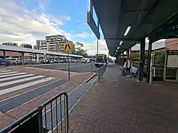 Wollongong Railway Station is located between Station Street (to the east) and Gladstone Avenue, accessed off Lowden Street to the west. There are car parks off Station Street and Lowden Street. The station has two perimeter platforms on the east and west sides, and two single storey platform buildings. Access between the platforms is provided via a 2005 covered footbridge with ramps and lifts. The station's perimeter is defined by white powder-coated aluminium fencing.[5]