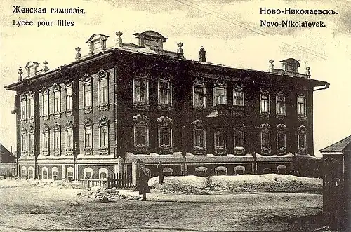 Women's Gymnasium of P. A. Smirnova was an educational institution founded in Novonikolayevsk in 1905 as a school of the 2nd category. In 1907, the educational institution was reorganized into a women's school of the 1st category, and in 1910 it was transformed into a women's gymnasium. Since 1916, the institution has been officially known as The First Novo-Nikolayevsk Gymnasium of the Ministry of National Education.[1][2]