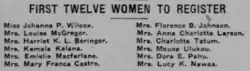 - ^ "Woman Suffrage for Hawaii More Than Mere Possibility". Honolulu Star-Bulletin. December 30, 1914. p. 1. Retrieved 2020-12-10 – via Newspapers.com.