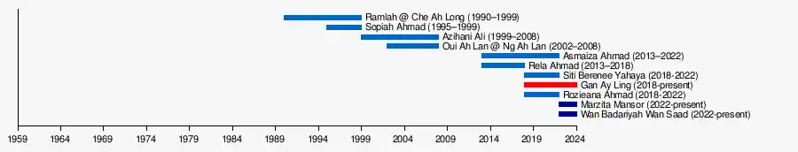 PKR | Wan Azizah Wan Ismail | Kajang | 2014 | 2018 | Not Contested | |