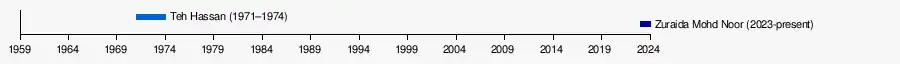PN (PAS) | Zuraida Mohd Noor | Ladang | 2023 | Serving |