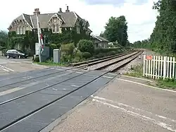 Womersley railway station was a railway station in North Yorkshire, England. It was situated on the Askern Branch Line and was built by the Lancashire & Yorkshire Railway to provide at link to the great Northern Railway at Doncaster. It was opened on 6 June 1848[1] and closed to passenger traffic on 27 September 1948.[2] The platforms have since been demolished, but the railway line through the site is still open and in regular use. The grand presence and noticeable architecture of the station likely resulted from the Lancashire and Yorkshire Railways’ belief that it was in keeping with the villages location. The large "Swiss cottage style" station building is prominent.
