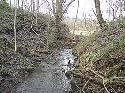 The stream running alongside Wood Mill can be mapped to a source from Werneth Low. After flowing under The Peak Forest Canal at Woodley Wharf, the water flows through an area that was once a Mill Dam for Top Mill. From here it goes through a culvert under Mill Pool Close into an area that was once the Mill Dam for Middle Mill (now known as Thorn Works). It is from here that it flows under the road once again, past Botany Mill (now Wellington Works) through a number of culverts until it surfaces alongside the site of Wood Mill, under the road and into the River Tame.