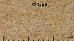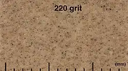 The key to preparing a defect free surface is to develop a sanding schedule that will quickly eliminate defects and leave the surface smooth enough so that tiny scratches produced by sanding cannot be seen when the wood is finished.[19] A sanding schedule usually begins with sandpaper that is coarse enough to remove larger defects (typically 80 or 100 grit, but sometimes higher if the surface is already quite smooth), and progresses through a series of sandpaper grades that gradually remove the sanding scratches created by the previous sanding steps.[19] A typical sanding schedule prior to wood finishing might involve sanding wood along the grain with the following grades of sandpaper, 80, 100, 120, 150 and finishing with 180 and sometimes 220 grit.[7] The precise sanding schedule is a matter of trial and error because the appearance of a sanded surface depends on the wood you are sanding and the finish that will subsequently be applied to the wood.[19] According to Nagyszalanczy,[19] coarse grained woods with large pores such as oak hide sanding scratches better than fine grained wood and hence with such species it may be possible to use 180 or even 150 grit sandpaper as the final step in the sanding schedule.[19] Conversely, sanding scratches are more easily seen in finer grained, harder woods and also end-grain, and hence, they require finer sandpaper (220 grit) during the final sanding stage.[19] The sandpaper selected for the final sanding stage affects the colour of stained wood, and therefore when staining is part of finishing avoid sanding the wood to a very smooth finish.[7] On the other hand, according to Nagyszalanczy if you are using an oil-based finish, it is desirable to sand the wood using higher grit sandpaper (400 grit) because oil tends to highlight sanding scratches.[19]
