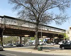 The Woodhaven Boulevard station is an elevated station on the BMT Jamaica Line of the New York City Subway, located in Woodhaven, Queens.[4] It is served by the J train at all times and the Z train during rush hours in the peak direction.[5]
