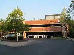 In October 1997, Woodland was identified as a possible site for a parking garage to replace its 450-space surface lot.[8] After numerous delays, the MBTA signed a ground lease agreement with a private developer in 2004. Under the terms of the agreement, the developer paid for the construction of a 548-space parking garage, accessible platforms, and entrance road to the station in exchange for rights to construct a transit-oriented development with rental apartments on the former parking lot.[9] The new platforms and garage opened in March 2006; the Arborpoint at Woodland Station development broke ground in April 2006 and opened in October 2007.[4][10][11]