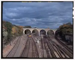 Due to the popularity of football games between the Fordham Rams and Yale Bulldogs in the 1920s, joint service between the New York Central Railroad and New York, New Haven and Hartford was moved from Woodlawn to Fordham Station.[4] Nevertheless, the station remained active. The realignment of the Bronx River Parkway between 1953 and 1955 converted the southbound lanes into off and on ramps to East 233rd Street via Webster Avenue. The northbound lanes were partially converted into a small parking lot for the station.[5][6][7]
