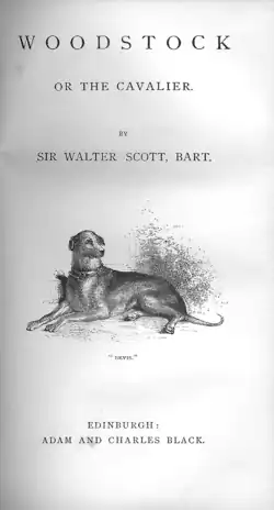 The first edition of Woodstock was published in Edinburgh by Archibald Constable and Co. and Longman, Rees, Orme, Brown, and Green in London on 28 April 1826.[3] As with all the Waverley novels before 1827 publication was anonymous. The price was one and a half guineas (£1 11s 6d or £1.57½.).[4] Scott does not seems to have revisited the novel until the spring of 1831 when he revised the text and provided an introduction and notes for the 'Magnum' edition, in which it appeared as Volumes 39 and 40 in August and September 1832.